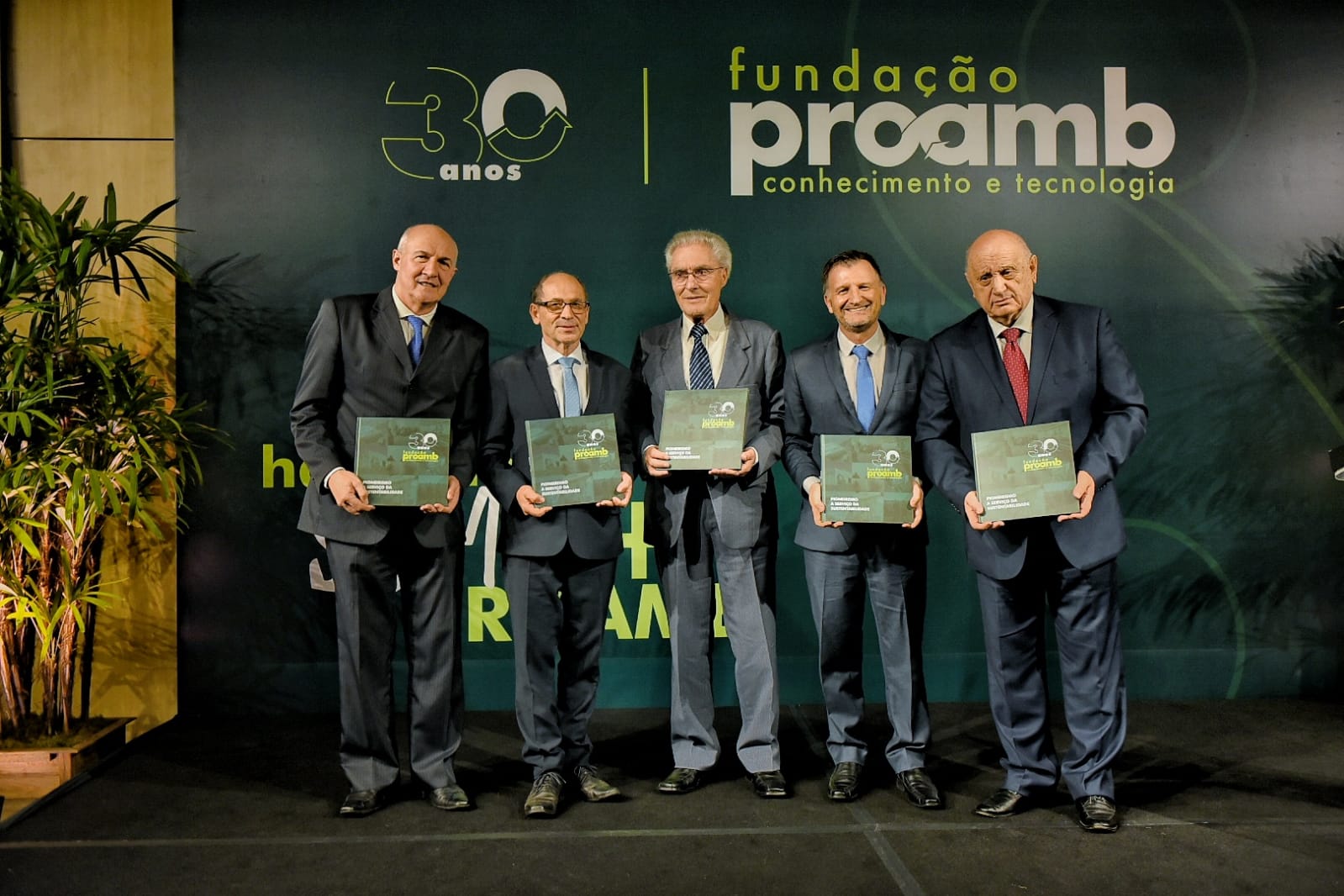 Outro momento particular da noite foi a apresentação do livro “Fundação Proamb 30 anos: Pioneirismo a serviço da sustentabilidade”. A publicação passa pelo passado, pelo presente e pelo futuro da organização, traçando um panorama da busca da Proamb pela construção de um polo ambiental no Estado. O presidente Neri Basso, numa ocasião repleta de significados, recebeu da pequena Betina Favretto o primeiro exemplar do livro. O momento, que simboliza renovação e solidez, ambos elementos de intrínseca significância para a fundação, foi seguido pela entrega do exemplar a importantes personalidades que compuseram a história da entidade.