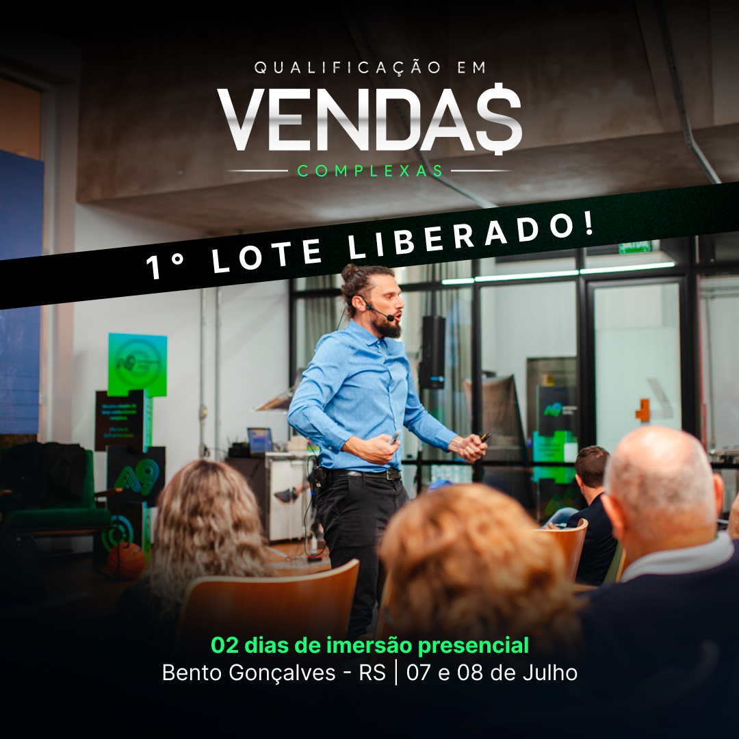 02 dias de imersão presencial em 10 horas de conteúdo e estratégias para aumentar a sua performance e melhorar seus processos e resultados comerciais e vender mais.