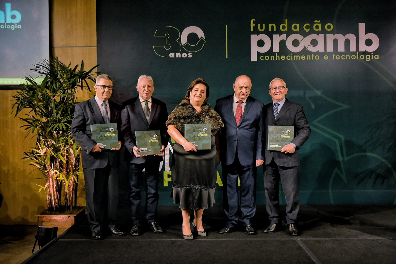 Outro momento particular da noite foi a apresentação do livro “Fundação Proamb 30 anos: Pioneirismo a serviço da sustentabilidade”. A publicação passa pelo passado, pelo presente e pelo futuro da organização, traçando um panorama da busca da Proamb pela construção de um polo ambiental no Estado. O presidente Neri Basso, numa ocasião repleta de significados, recebeu da pequena Betina Favretto o primeiro exemplar do livro. O momento, que simboliza renovação e solidez, ambos elementos de intrínseca significância para a fundação, foi seguido pela entrega do exemplar a importantes personalidades que compuseram a história da entidade.