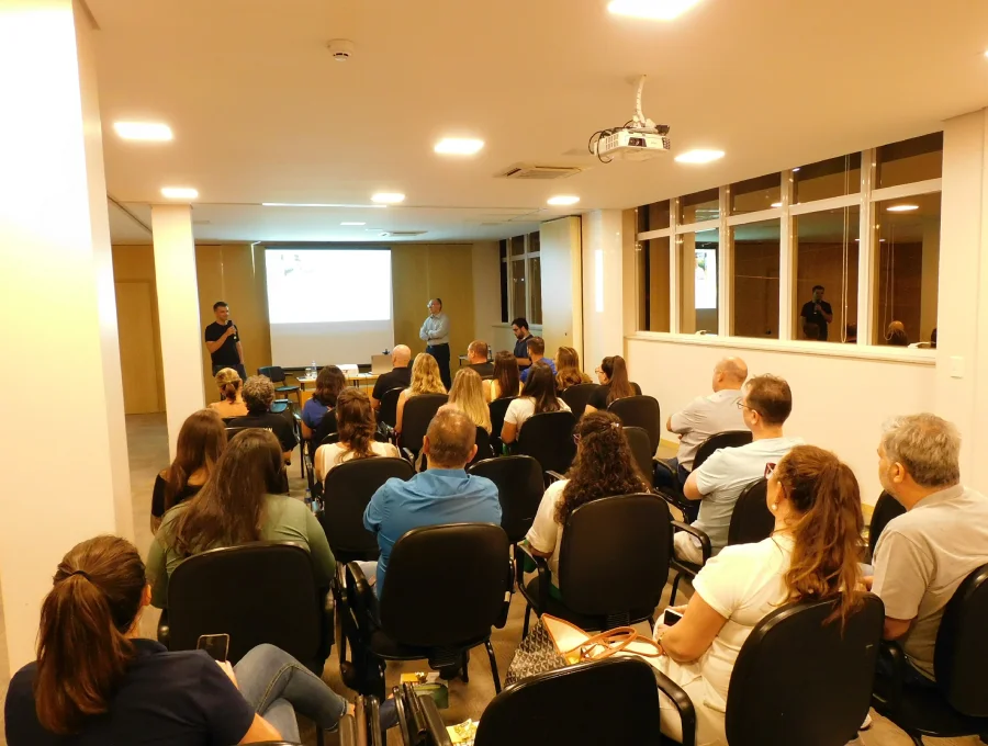 Egressos do MBA, Guilherme Lovera, diretor comercial da empresa Rexfort, e César Anderle, gestor da Anderle Transportes, compartilharam com o público algumas das vivências e aprendizados adquiridos durante o curso. “Muito do que vimos nas aulas, nós implementamos na empresa. Exemplo disso foi o entendimento de que parte da inteligência emocional é saber ouvir. Criamos ações de aproximação com os colaboradores e percebemos mudanças positivas diretas nos resultados”, destacou Anderle. “O curso passa informações e insights que eu semanalmente revisito, são conteúdos com aplicação prática real”, comentou Lovera.
