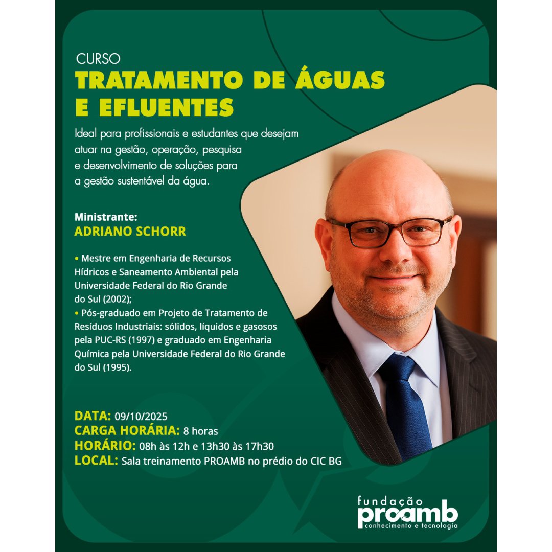 Objetivo do Curso: Capacitar os participantes sobre os princípios, técnicas e boas práticas no tratamento de águas e efluentes industriais, com foco nas necessidades específicas das indústrias moveleiras, metal-mecânicas e agroindustriais da região da Serra Gaúcha.